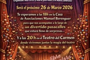 La idea original, de Ana Ortiz y María José Ruiz, actrices de la Compañía de Teatro María Zambrano, ha sido respaldada por Cultura. Se ha organizado un recorrido de animación e interpretación por nuestras calles, con salida el 26 de marzo a las 18:00 horas, desde el edificio de la Casa de las Asociaciones. El…