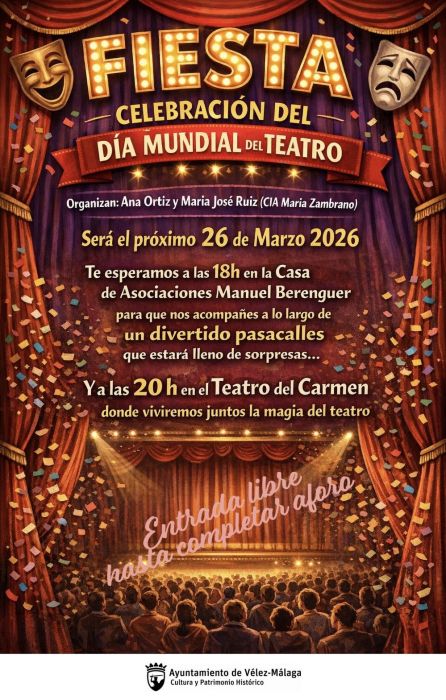 Vélez-Málaga celebrará el 26 de marzo el Día Mundial del Teatro con un pasacalles cultural y escénico