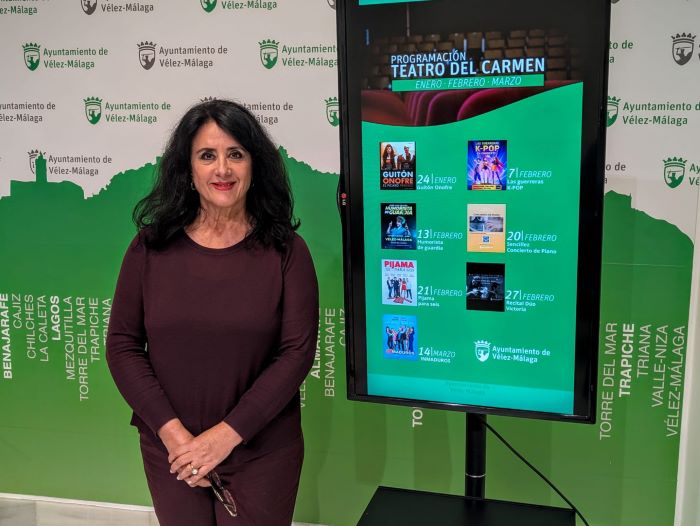 El Teatro del Carmen de Vélez-Málaga volverá a convertirse en eje principal de grandes espectáculos musicales y teatrales en el primer trimestre de 2026. La apuesta de la Concejalía de Cultura del Ayuntamiento veleño por obras e iniciativas de alto nivel vuelve a ponerse de manifiesto con la convocatoria de un cartel repleto de conciertos, obras de teatro de recorrido nacional, veladas de humor o recitales de piano y violín, entre otros. La edil del Área, Alicia Ramírez, ha descubierto en la mañana de hoy una programación repleta de variantes al servicio de los vecinos y visitantes que quieran saborear una oferta cultural y teatral para todos los públicos y edades.