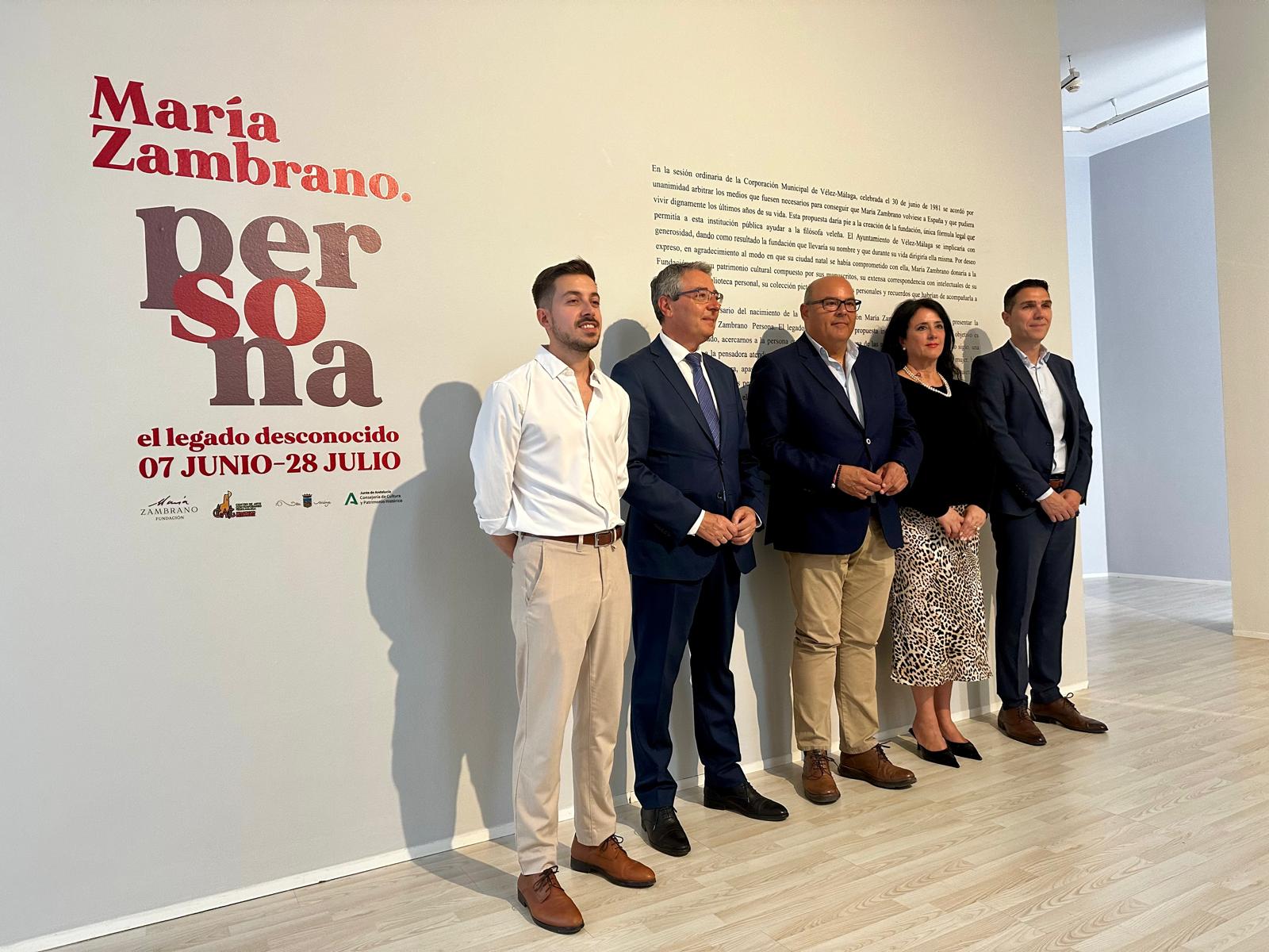 El alcalde de Vélez-Málaga, Jesús Lupiáñez, junto con el presidente de la Diputación de Málaga, Francisco Salado; la edil de Cultura, Alicia Ramírez; el director de la Fundación, Luis Ortega; y el responsable de programación del CAC, Luis Reyes; han participado esta mañana en el estreno de la exposición que el Centro de Arte Contemporáneo Francisco Hernández de Vélez-Málaga acogerá desde este 7 de junio hasta el 28 de julio bajo el título ‘María Zambrano: Persona, el legado desconocido’. Esta exposición, que se adentra en la vida más íntima y multifacética de la pensadora veleña, forma parte de los actos conmemorativos por el 120 aniversario de su nacimiento.