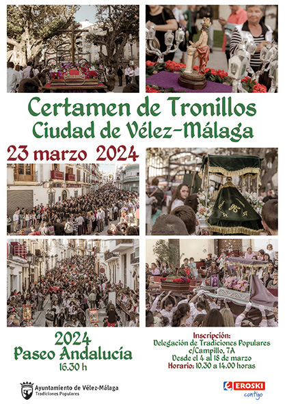 El popular Certamen de Tronillos de Vélez-Málaga cumplirá una nueva edición esta próxima Semana Santa y desde el Ayuntamiento ya se ha abierto el plazo de inscripciones para participar en el tradicional desfile, que tendrá lugar el sábado, 23 de marzo.
