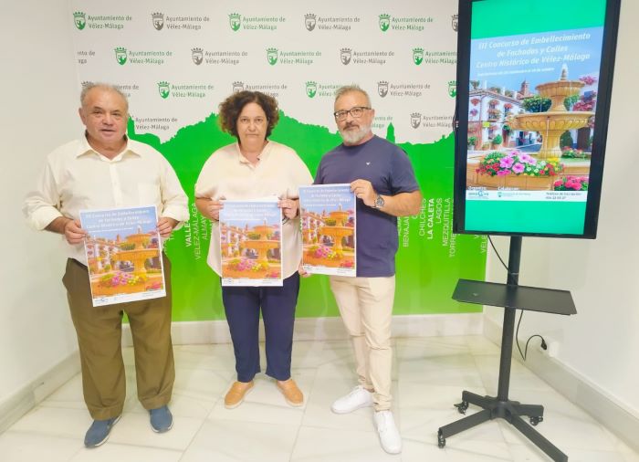 El certamen, impulsado por la Asociación de Medio Ambiente y Calidad de Vida para la Axarquía (AMACVA), se desarrolla de forma coordinada con la Delegación de Centro Histórico y persigue “el fomento de la intervención ciudadana en el embellecimiento y ornamentación de las calles, plazas y demás rincones singulares de Vélez-Málaga, generando una complicidad en estas labores con nuestros vecinos”, ha destacado el concejal del Área, Juan Fernández Olmo, que ha desvelado la cita junto a la presidenta de la asociación, Concepción Navas, y el autor del cartel del certamen, José María Jiménez.