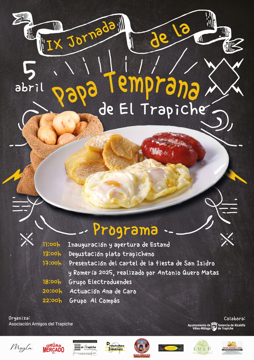 El próximo sábado 5 de abril se darán la mano en el Trapiche tradición, gastronomía, arte y música en directo. La fusión de estos cuatro términos tendrá lugar de excepción en la IX Jornada de la Papa Temprana del núcleo poblacional, una nueva edición de este singular festejo que cumple ya nueve citas, consolidado como una actividad de gran participación de vecinos venidos de todo el término municipal y visitantes del resto de la comarca.