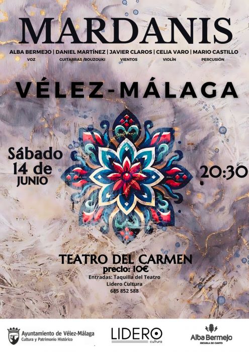 El protagonismo de esta puesta en escena será del grupo Mardanis, que emerge como una propuesta musical innovadora nacida del proyecto Memorias de Sefarad, referente internacional en la recuperación y difusión de la música sefardí tradicional. Bajo la dirección artística del guitarrista y compositor Daniel Martínez, formado en Historia del Arte y Guitarra y compositor residente de la Fundación Antonio Gala, Mardanis ejecuta una evolución de lo ancestral a lo contemporáneo. Este autor ha tomado parte en escenarios de prestigio como el Festival Internacional de Música Sefardí de Córdoba, la Sinagoga del Tránsito de Toledo o la Fundación Tres Culturas del Mediterráneo. “Animo a todos los que quieran disfrutar de un espectáculo musical diferente y original, es una gran satisfacción y tengo que agradecer que nos abran las puertas del teatro del Carmen, que considero mi casa, con Mardanis, un proyecto con sonidos diferentes, donde trabajamos sobre música sefardí, pero combinando con estilos modernos, de procedencia turca o de los Balcanes”, ha rescatado el músico, que no olvida la presencia de “nuestra tradición, con el flamenco como referente, y letras que aluden al mar, al amor y al desamor… sobre todo es una experiencia distinta que supondrá a los asistentes abrir su percepción sonora a nuevos timbres e instrumentos poco conocidos, como el buzuki o el laúd árabe”.