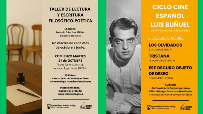 Además, el Centro de Arte Contemporáneo Francisco Hernández acoge durante octubre talleres de lectura y escritura poética, visitas guiadas a exposiciones inéditas sobre el paisaje de la Axarquía y una mesa redonda dedicada al pintor recientemente fallecido Lope Martínez Alario, completando un mes lleno de cultura y actividades para todos los públicos.