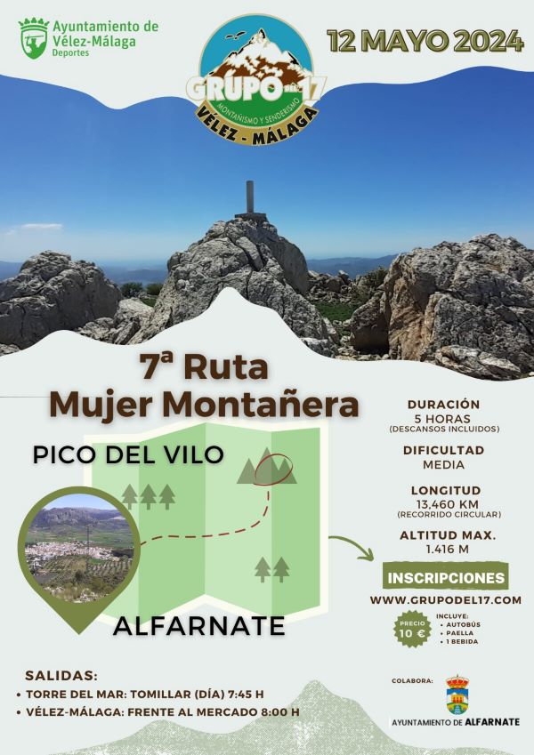 La Concejalía de Deportes del Ayuntamiento de Vélez-Málaga ha presentado la VII edición de la Ruta Mujer Montañera que se llevará a cabo el próximo 12 de mayo con la subida al pico El Vilo en Alfarnate y que está organizada por el Club Deportivo de Montañismo Grupo del 17.