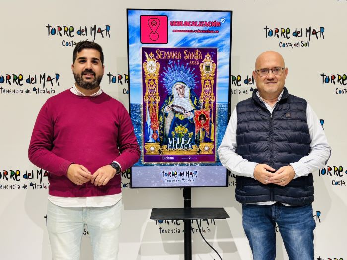 El primer teniente de alcalde del municipio de Vélez-Málaga y concejal de Turismo, Jesús Pérez Atencia; junto al concejal de Nuevas Tecnologías, David Segura, han informado en la mañana de este viernes la continuidad de la iniciativa puesta en marcha el pasado año que permitirá a través de una web geolocalizar los diferentes tronos de Semana Santa en su recorrido procesional.