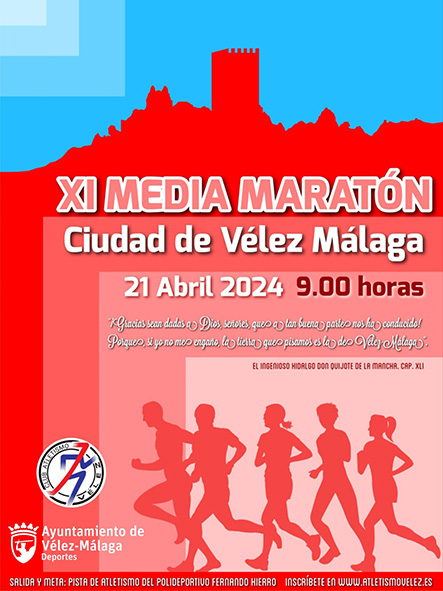 Vélez-Málaga ya está preparada para vivir este domingo 21 de abril la gran fiesta del deporte por sus calles con la celebración de la XI Media Maratón de Vélez-Málaga, a partir de las 9.00 horas. Un evento organizado por la Concejalía de Deportes del Ayuntamiento, junto con el Club Atletismo Vélez, que cuenta con más de 500 inscritos, sólo a expensas de cerrar el plazo de inscripción esta madrugada.