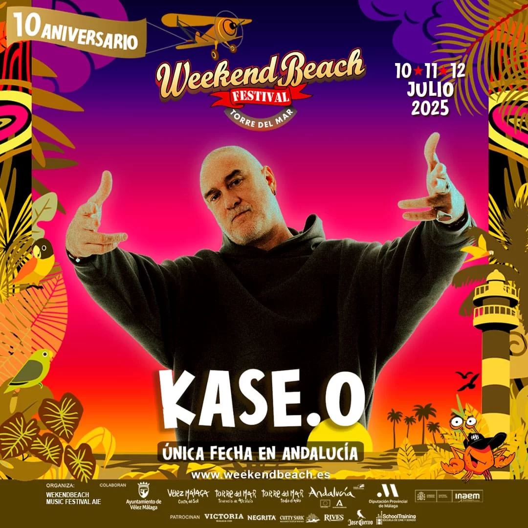 Weekend Beach Festival adelanta regalo navideño para todos los fans y amantes del rap en España, KASE O celebrará el X Aniversario del festival de Torre del Mar y su vuelta a los escenarios el próximo mes de julio en la playa malagueña. La cita será los días 10, 11 y 12 de julio como único concierto en Andalucía.